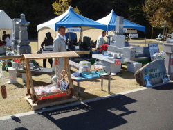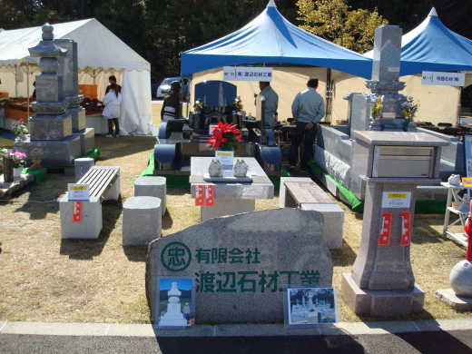 | 2009年10月31日〜2009年11月3日にかけ、「いばらきストーンフェスティバル」に出展しました。「いばらきストーンフェスティバル」は、笠間芸術の森公園イベント広場にて、国内産・国内加工石製品の展示即売会や、茨城県産の御影石で作られたモニュメントやオブジェなどを展示するものです。当石材店でも、墓石をはじめ、ガーデン灯や彫刻類をはじめ、数多くの石材製品を出展しました。 |